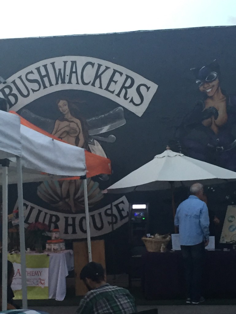 Last night, on Tuesday May 24, 2017, for those who came out to see the lineup of local bands making music on the main stage or just to have a drink with friends, there was live mural spray painting back under the stars where roaches (both kinds) often linger.
