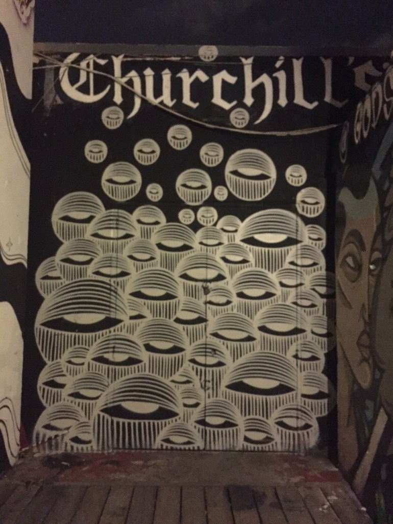Well at least this image, in a more hidden area of Churchill’s Pub, has eyeballs. The image is also from @aquarellaart who has other more amazing, beautiful and positive images of women, none at the pub. Life is full of signs and people take in the messages all around them.