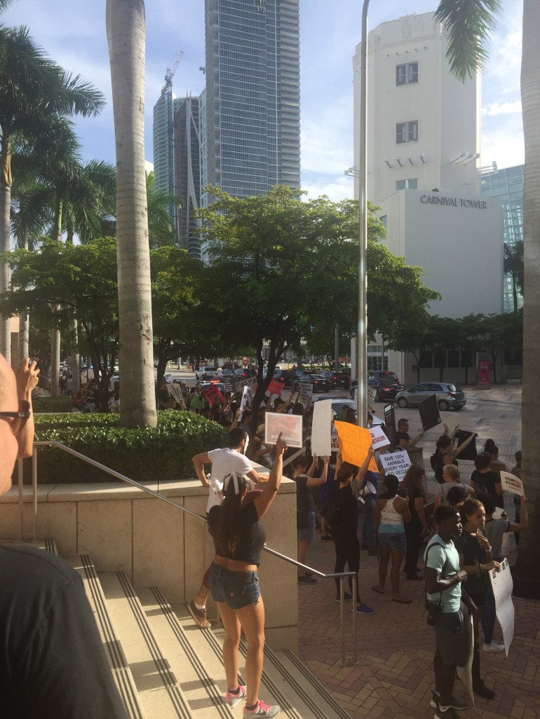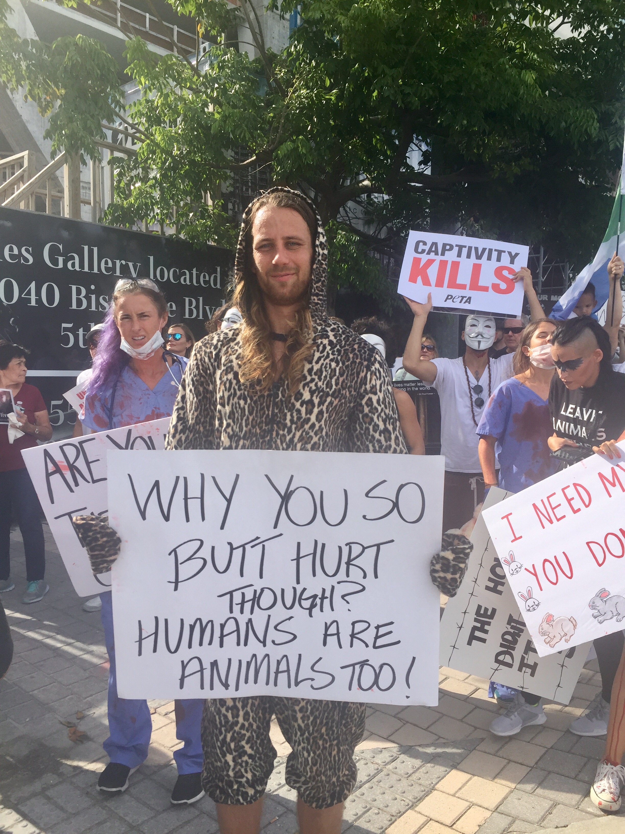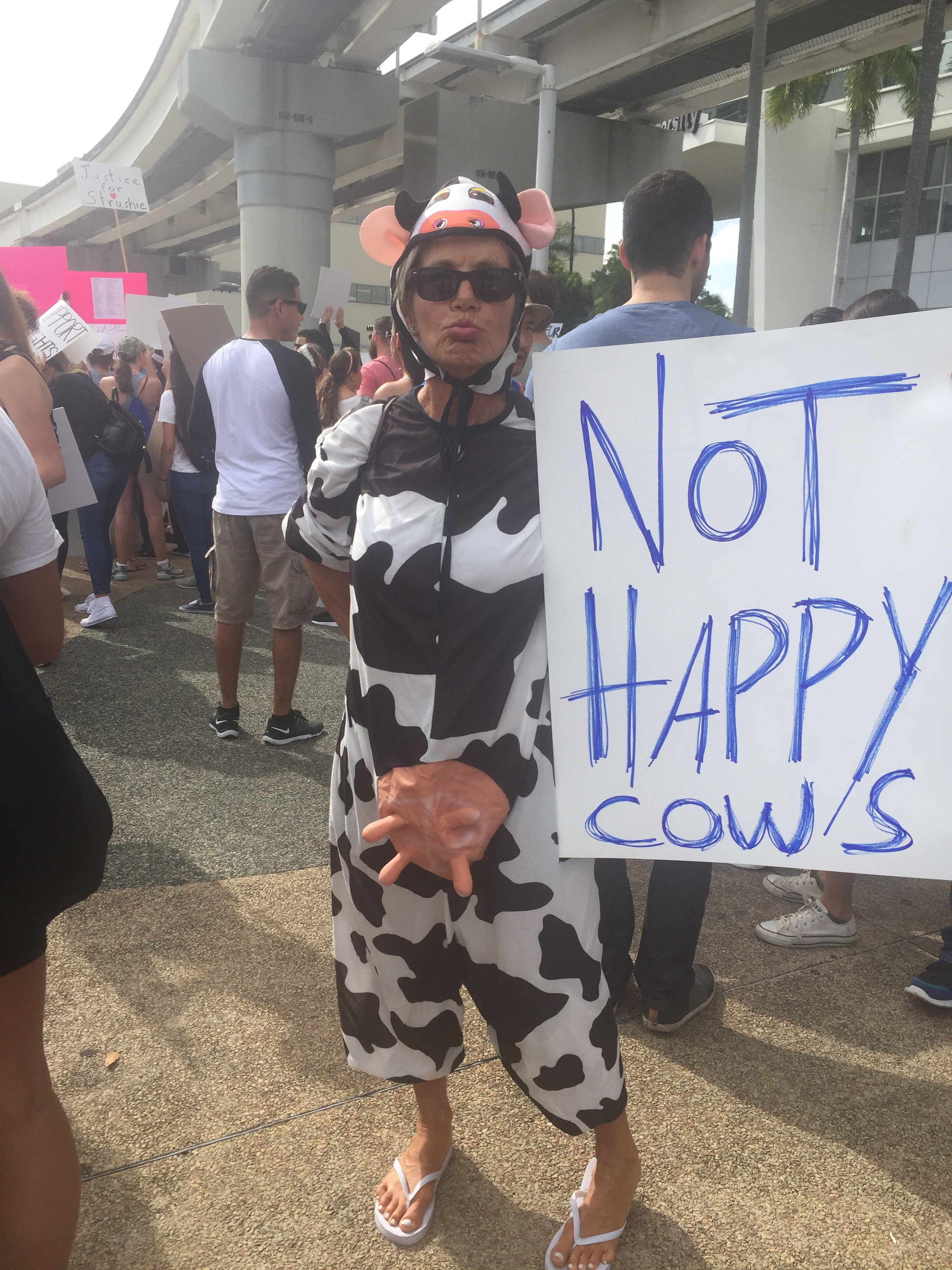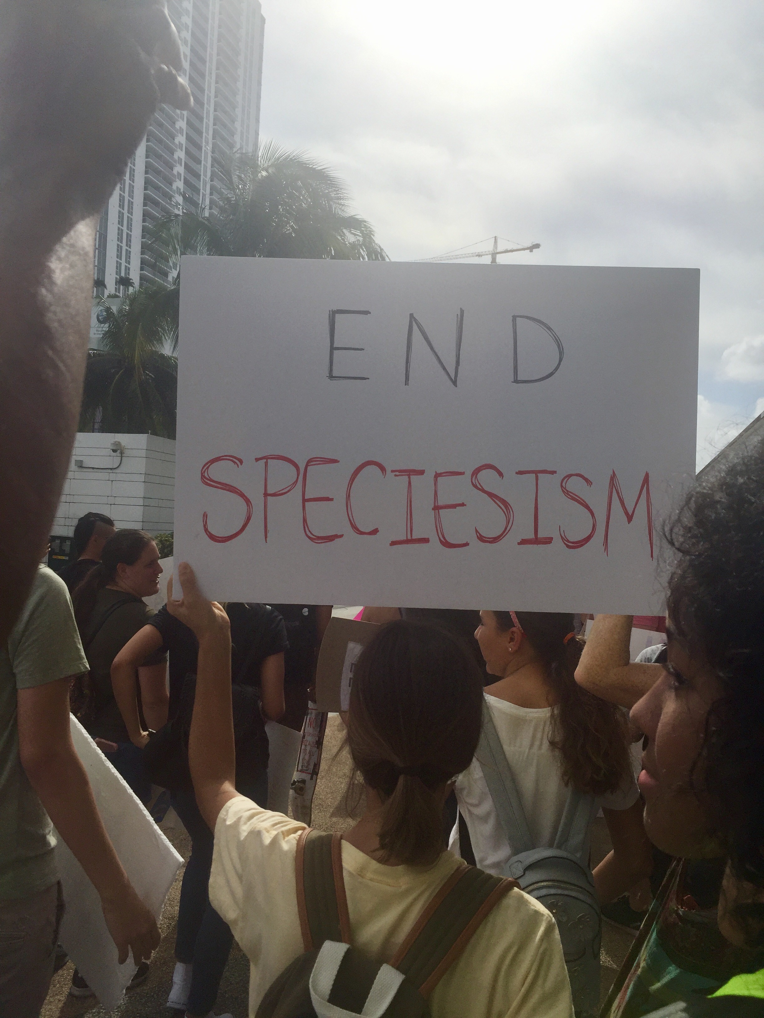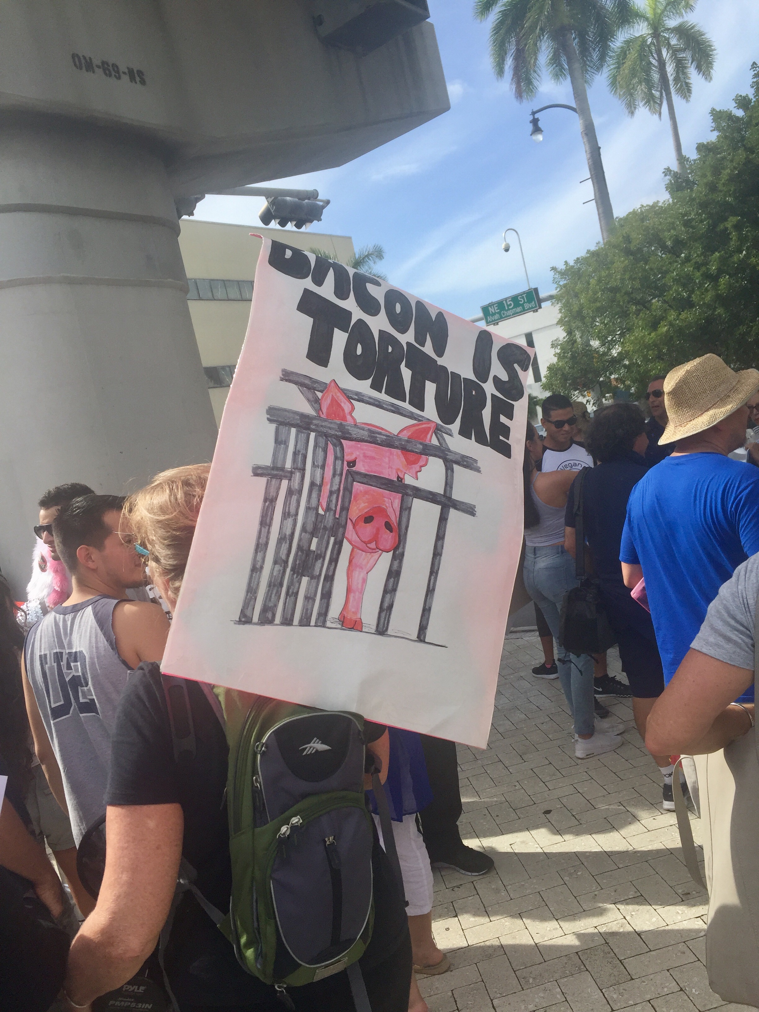 But  Miami is not all that bad. We have the beach. We have the beach. We have the beach. There are a number of conscious individuals pushing the city forward.  They know the science and are aware of the facts: animal abuse, the waste of water, climate change, pollution, habitat and rainforest destruction, diabetes, stroke, heart disease, obesity.  Here are some of those beautiful, animal loving, and aware South Floridians who came out to march for our four-legged friends.