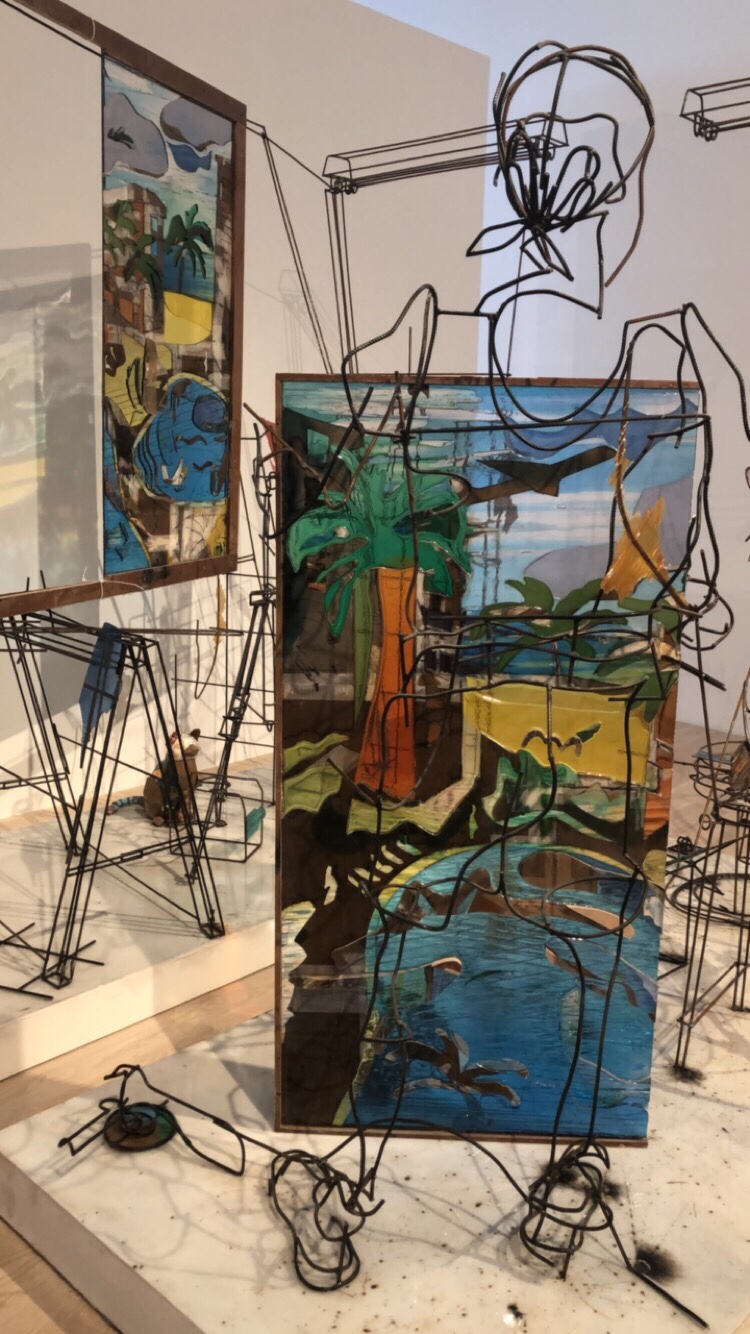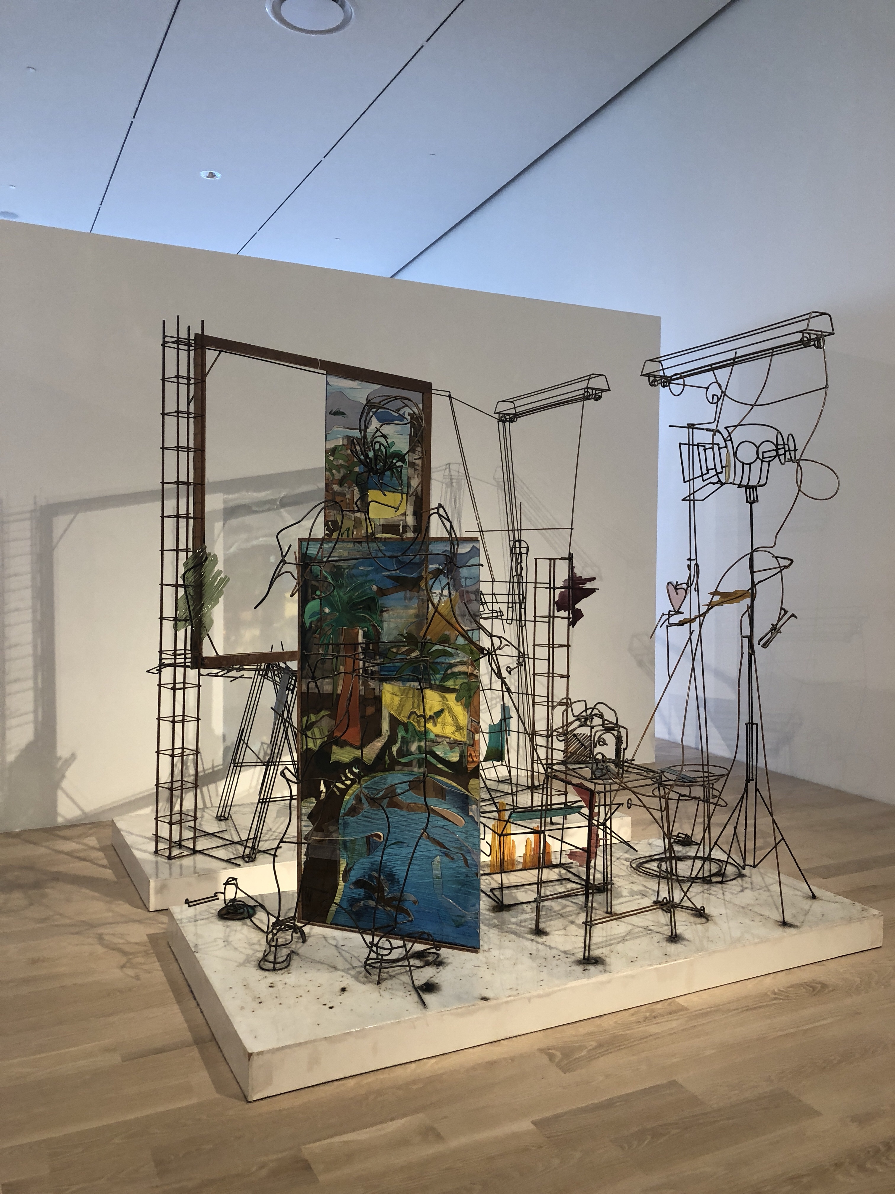 The inviting entrance is framed with a geometrical open air facade of glass doors underneath interlocking metal triangles and lighted panels. Walking in through the lobby, you can see the outdoor sculpture garden through the wall-length windows that bring natural light into the space. You can continue towards the tree-canopied exterior to view the long-term installations, now featuring George Segal’s Three Figures and Four Benches, 1979, Abigail DeVille’s Lift Every Voice and Sing, 2017 and Mark Handforth’s Dr. Pepper, 2017. You can hang out in the garden and sit on one of the benches for a half an hour in the middle of the day and come back since it’s free. Or, you can turn into the six ground floor galleries, providing a project space for emerging artists.