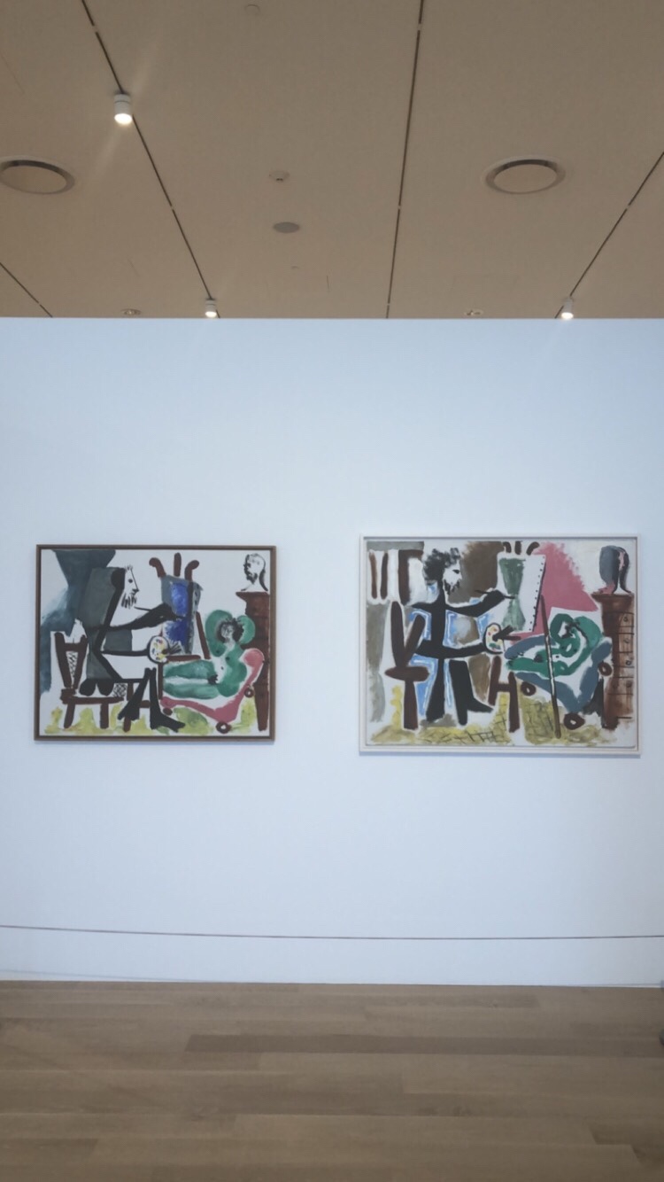 A winding stairway or elevators lead you up to the second and third floors where Special Exhibitions are housed. At the moment, the inaugural display is “The Everywhere Studio.” Showcasing over fifty artists, the major group exhibit examines the role of the artist and his or her studio from the postwar period to the present. The showcase flows one room featuring major male artists of the 1950s and 1960s like Philip Guston, Pablo Picasso, Andy Warhol, Roy Lichtenstein and Yves Klein to another “feminist” room displaying female-centered art of the 1970s from the likes of MIriam Schapiro, Faith Ringgold, and Carolee Schennemann.
