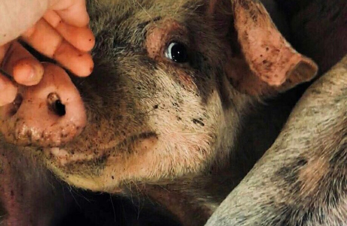 At the entrance, blasted Reggaeton music drowns out the distant screams of young pigs, who sound like horrified children. Most pigs murdered for their flesh are less than a year old and their natural life span is about ten years. In their short lives, they lie in a wooden pen full of their own waste. Most of them are listless, like beached whales, they have been fattened for consumption, and they have relinquished any joy de vivre, waiting for their deaths, so they just lie huddled together in shit.