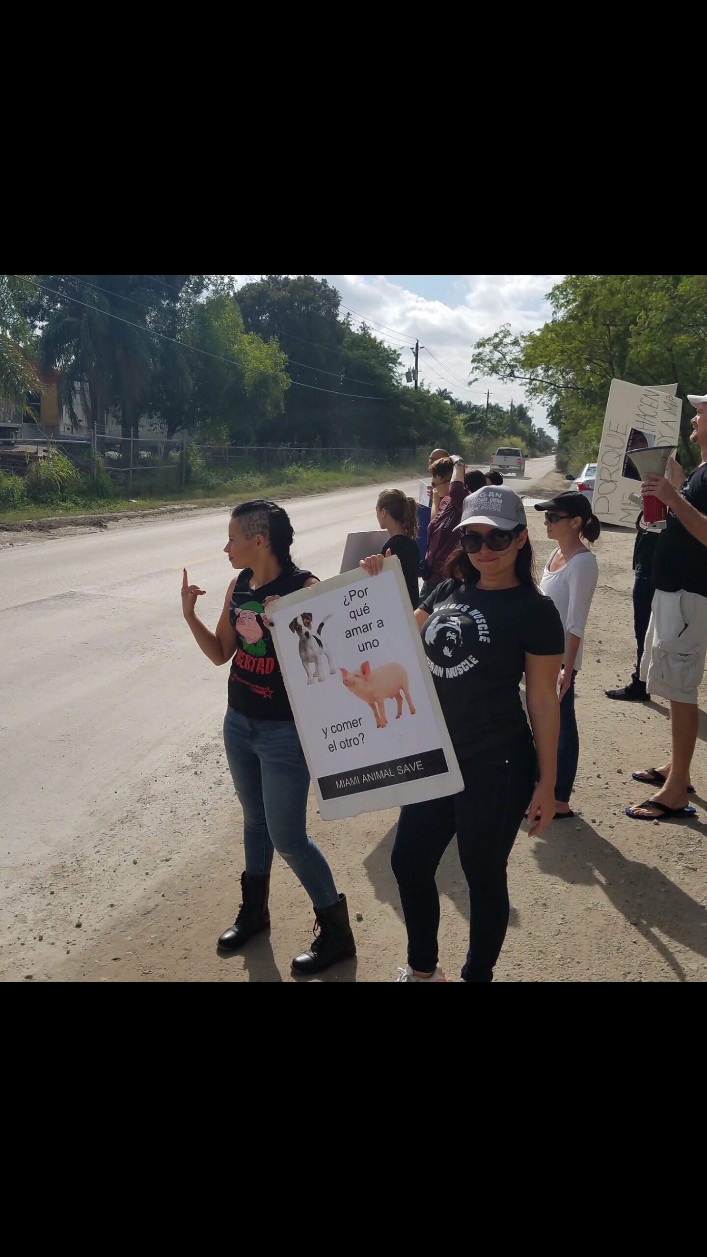 Most recently Miami Animal Save has organized candle lit vigils and protests around popular days like Noche Buena, when many Cubans come to get pigs to cook in a Caja China.